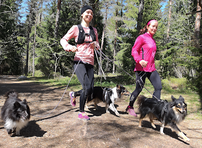 | Sanni Kariniemi ja Tanja Manninen olivat myös ilman ajanottoa ETR-reitillä koirien kanssa. |